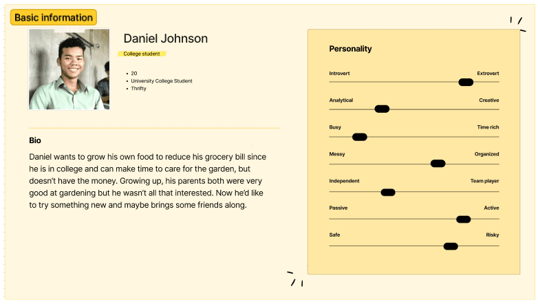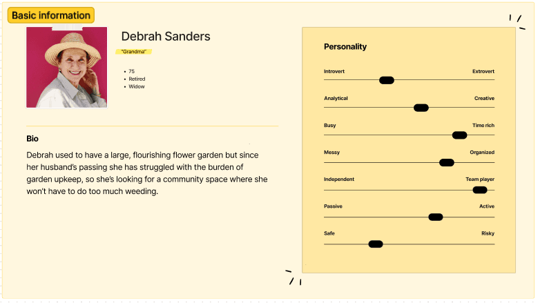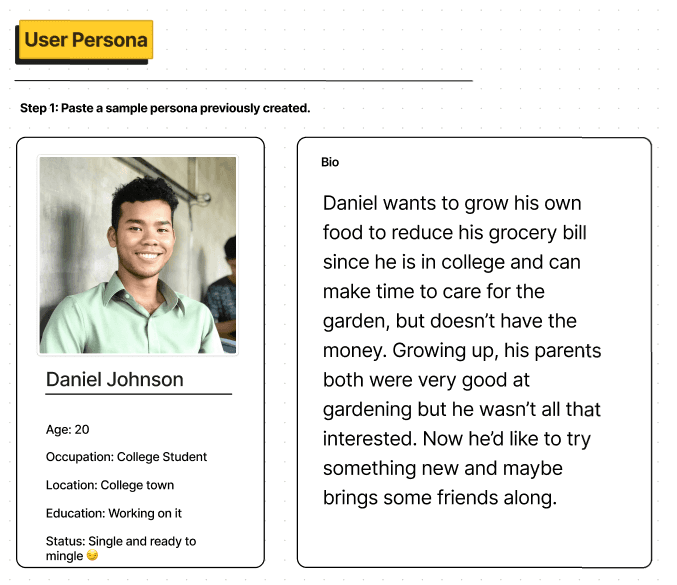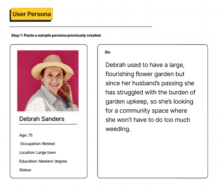 Step 1: Paste a previously created Persona. We added a bit more info that helped me better understand who the personas were.